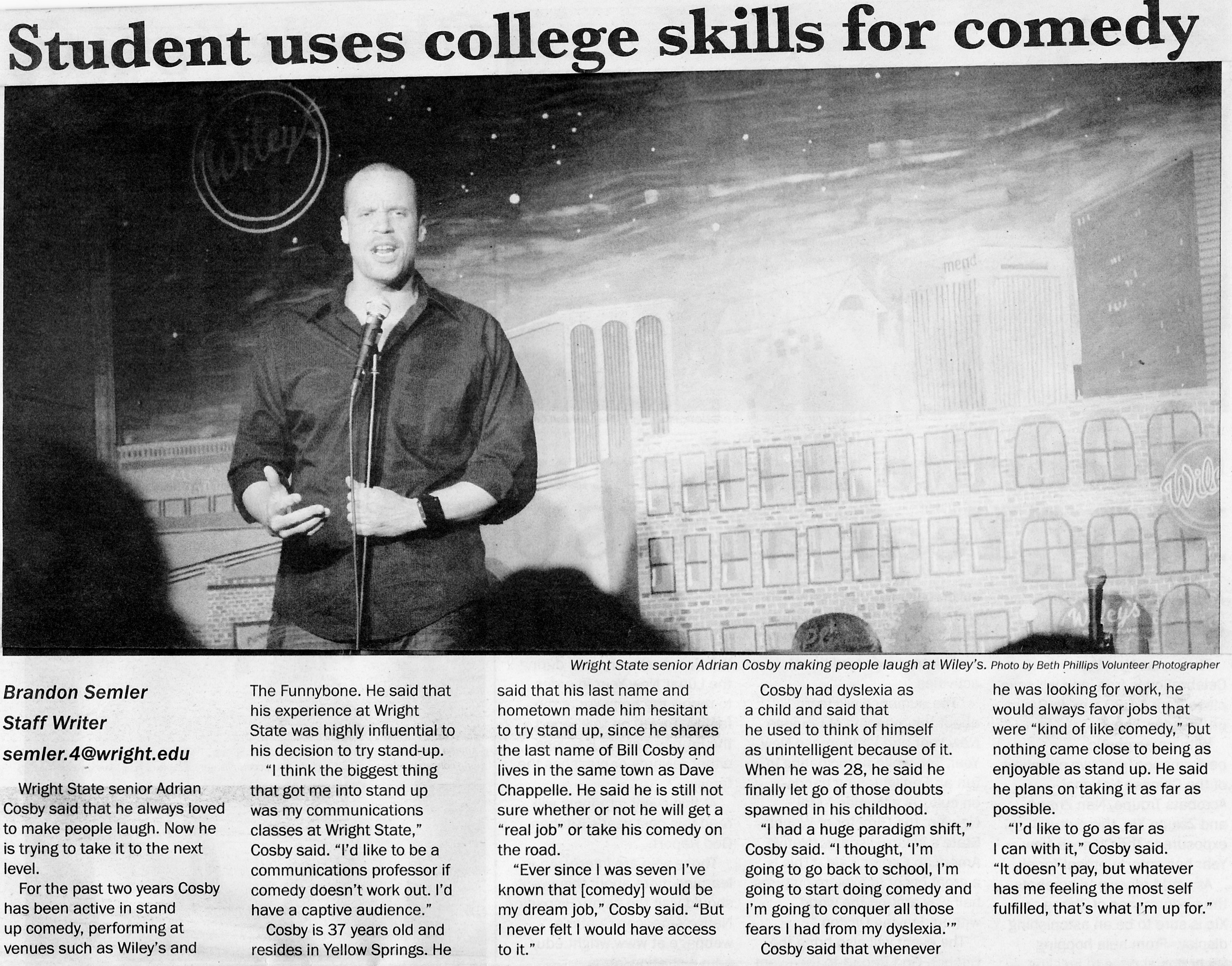 Press Head Shot http://www.theguardianonline.com/wright-life/2013/02/02/student-turns-to-comedy-for-his-future/ Share this: Share on X (Opens in new window) X Share on Facebook (Opens in new window) Facebook Share on Pinterest (Opens in new window) Pinterest Share on Reddit (Opens in new window) Reddit Share on LinkedIn (Opens in new window) LinkedIn Like Loading... Leave A Comment ↓ Comments Leave a comment Cancel reply Δ Trackbacks & Pingbacks No incoming links found yet.